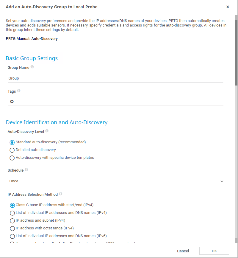 <%NUMBERING1%>.<%NUMBERING2%>.<%NUMBERING3%> PRTG Manual: Add an Auto-Discovery Group