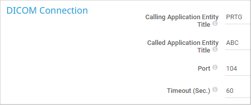 Enter the Application Entity Title (AET) of PRTG to initialize a DICOM connection.