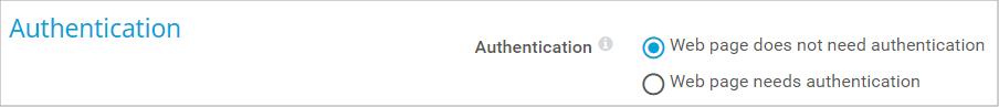 This setting is only visible if you select Web page needs authentication above. Enter a user name. Enter a string.