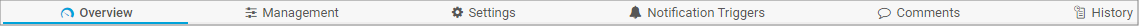On the History tab, all changes in the settings of an object are logged with a time stamp, the name of the user who made the change, and a message. The history log retains the last 100 entries.