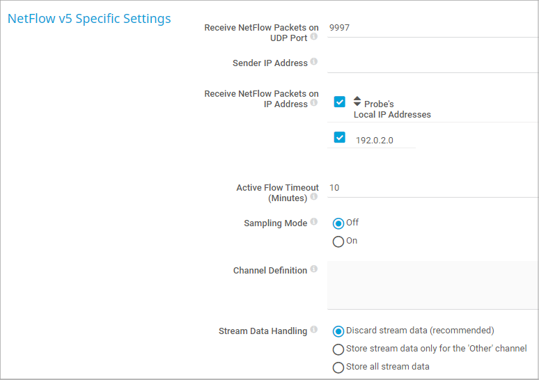 NetFlow v5 Specific Settings