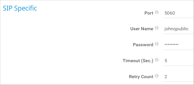 If the connection to the SIP server fails, the sensor tries to connect again. Enter the maximum number of retries. After the sensor reaches the maximum count, it shows the Down status. Enter an integer value.
