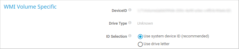 - Use system device ID (recommended): Use the system device ID. This is usually the best option for this sensor because the device ID does not change when the volume is renamed.